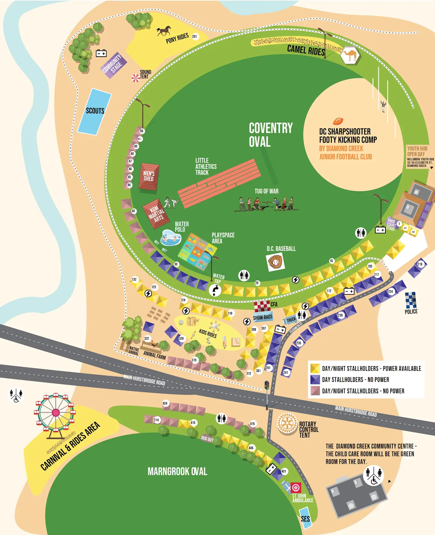 Please find below important information for all stallholders and participants of the Diamond Creek Rotary Town Fair.